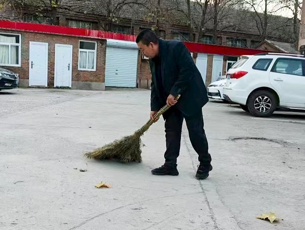 作為兼任分公司院內(nèi)五家單位的警衛(wèi),王亮沒把“守大門”當(dāng)成簡單的值守,而是用“多走一步、多想一層”的主動,把院區(qū)安全與服務(wù)做得既扎實又貼心。夜班值守時,他更把“巡查”做成了“安全隱患排查”,仔細(xì)檢查門窗、消防器材及車輛停放。有次巡查,他注意到有車輛未關(guān)車窗,當(dāng)即聯(lián)系了車主,確保安全。而每天清晨的打掃,更像是他對“家”的細(xì)致守護(hù)的延伸。每天六點天剛亮,多數(shù)同事還沒出門,他已經(jīng)扛著掃帚、拎著簸箕,在機關(guān)前后院忙活開了。落葉飄在花叢里,他就蹲下來一片一片撿;紙屑卡在磚縫里,他用小夾子慢慢夾出來,連墻角的雜草都要順手拔掉?!霸凼刂@院兒,不僅要保安全,更要讓大伙兒上班看見清亮的環(huán)境,心里敞亮?!蓖趿恋脑捳Z樸實無華。在他眼里,“警衛(wèi)”不只是一份工作,更是守護(hù)分公司“家”的責(zé)任,這份盡責(zé)與主動,正是“把院區(qū)當(dāng)自家”最樸素的表達(dá)。